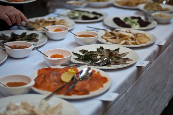 If you think that was a banquet (and it was!) wait until you hear what we had for lunch on Sunday for the final meal of the symposium. Several members of different Slow Food Convivia in Norway conspired to bring us a traditional (and sustainable!) Norwegian Lunchbord. The ingredients arrived via sailing ship from Bergen via Cardiff and were then prepared, under the direction of Pål Drønen and Margareth Tislevoll.