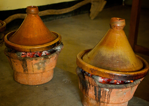 Tagines cooking over charcoal fires / photo by Flickr user John Mather