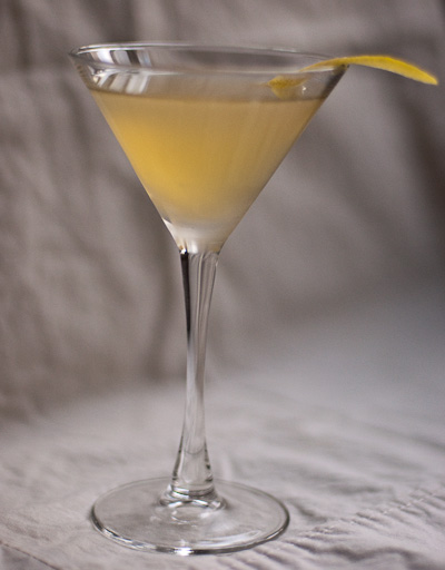 Add all ingredients except the twist of lemon to a cocktail shaker, shake with ice and strain into a chilled cocktail glass. Garnish with the twist of lemon and serve in a 3½ ounce glass.